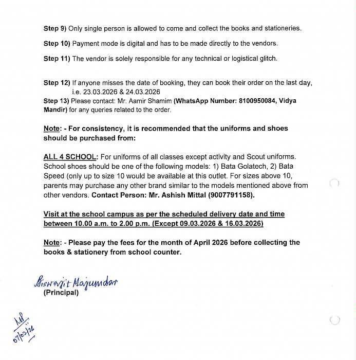 Notice for Books and Stationery Sale 2026-2027