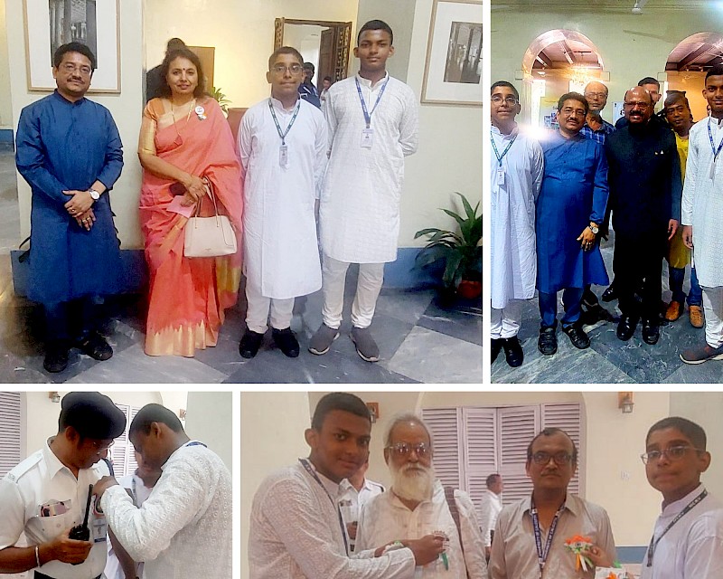 Thirty enthusiastic students of Classes 7 to 9 participated in the workshop. The highlight of the project was the selection of two students, Anik Dutta (9E)and Jishnu Bag (8D) to represent the school at a prestigious event held at Raj Bhavan on the evening of 15 August 2024. These students had the rare honour of pinning the badges they made on the dignitaries assembled in the event. Mr Biswajit Majumdar, Headmaster, was also a part of the programme at Raj Bhavan.