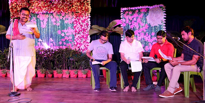 The programme was a winner right from the word go. The women members of the institutions, all clad in shades of purple, ushered in the auditorium by the men amidst resonating conch shells and presented with pink sashes. The cultural events spicing the day were a medley of songs, a humorous skit with a powerful message, a heart-wrenching recitation and a fun quiz. The thoughtful speeches by our dear Chairman Sir and CEO Sir left us all introspecting. A short video, featuring the 21st century empowered women faculty of the MCKV family, was an excellent watch. The all-men team excelled in their performances and won the hearts of the gracious ladies.