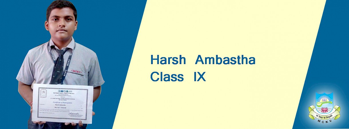 On the occasion of the 125th Birth Anniversary of Professor Satyendra Nath Bose, a national essay competition for school students on the Challenging Problems of Science was organised at the Satyendra Nath Bose National Centre for Basic Sciences, Kolkata, on 5th and 6th September,2018. Harsh Ambastha of Class IX-D was selected to make a power point presentation on the topic 'Renewable Energy Resources'. Harsh received a participation certificate and a cheque for Rs. 2000.