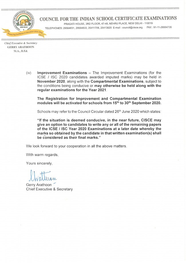 Revised dates for registration and Confirmation; Compartmental and Improvement Examinations.