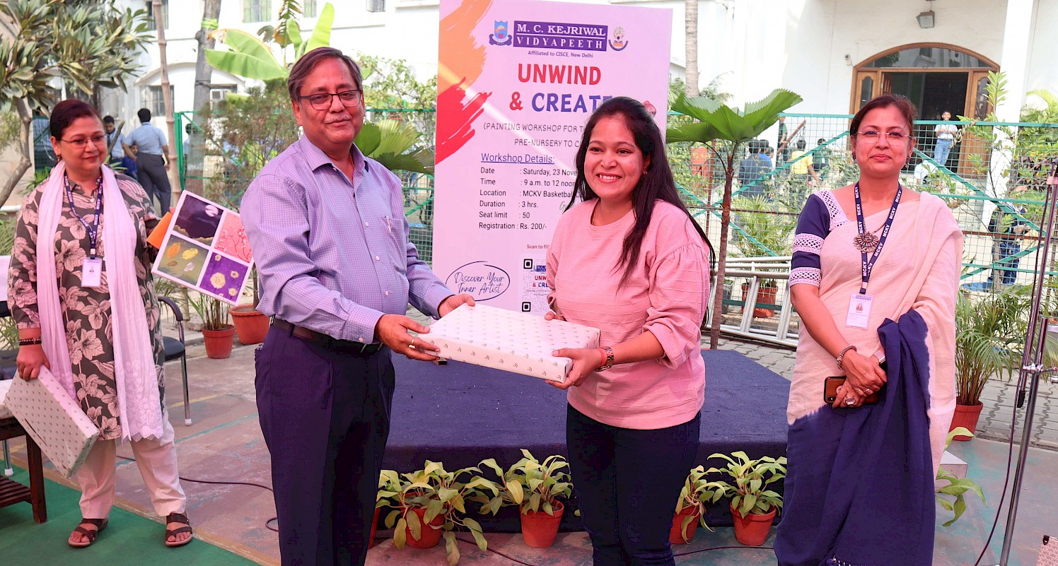 On 23 November 2024, MCKV hosted Unwind and Create, a painting workshop for the parents of Pre-Nursery to Class 5 at MCKVIE basketball ground. This unique initiative offered parents a chance to relax, connect, and bond in a joyful setting while exploring their artistic side. Guided by a trained artist, Ms Debjani Dakshit Dasgupta, participants unleashed their creativity, producing vibrant artworks and fostering a sense of community.
